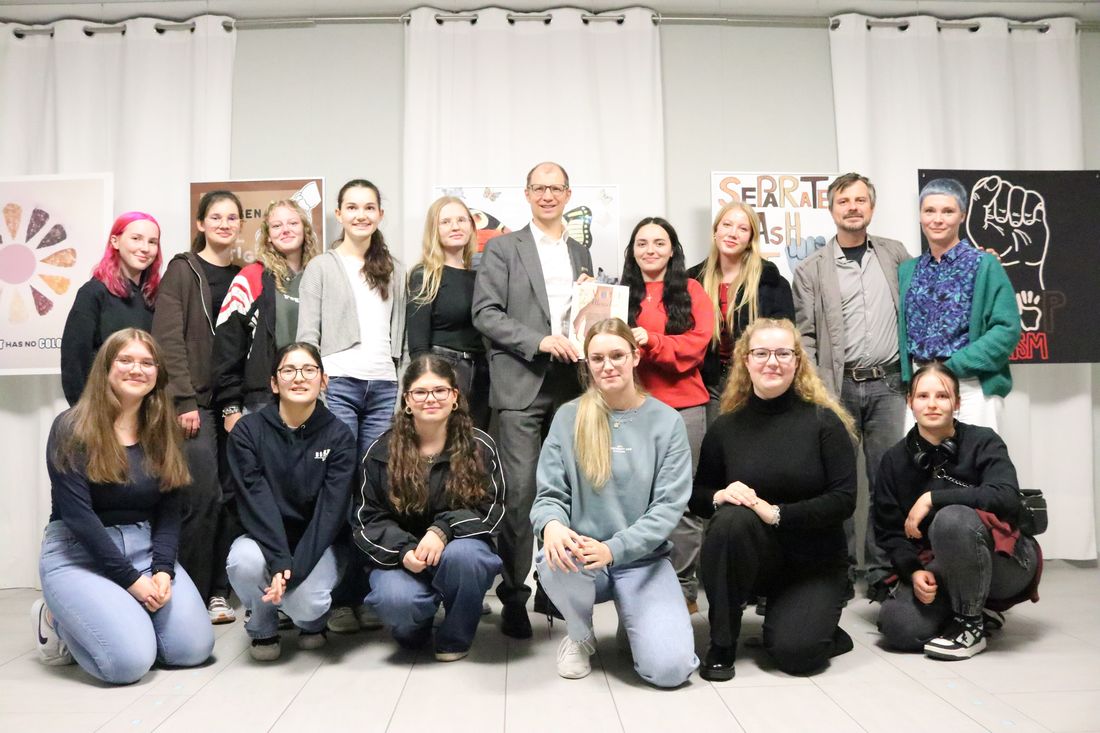 Wie die Fachlehrer Florian Härle und Anna Brooke betonten, erlebten die Schülerinnen und Schüler eine Welt, die von Ungerechtigkeiten und Vorurteilen geprägt sei: „Deshalb setzen wir uns für Werte ein, die unsere Gesellschaft für alle lebenswert machen: Wir möchten, dass jeder Verantwortung übernimmt und sich für Toleranz und Respekt stark macht.“