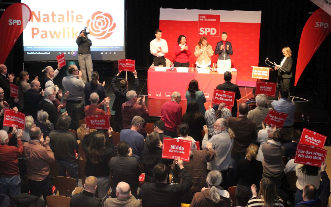 Auf der Wahlkreiskonferenz der SPD Wetterau in Friedberg/Hessen nominierten die Delegierten und zahlreiche Mitglieder die Bundestagsabgeordnete Natalie Pawlik mit überwältigender Mehrheit – ohne Gegenkandidaten: in - wieder zur Bundestagskandidatin. Sie ist seit 2021 die direkt gewählte Bundestagsabgeordnete den Wahlkreis 177 (Wetterau I) und Beauftragte der Bundesregierung für Aussiedlerfragen und nationale Minderheiten, Ordentliches Mitglied im Ausschuss für Arbeit und Soziales sowie Stellvertretendes Mitglied im Ausschuss für Inneres und Heimat.