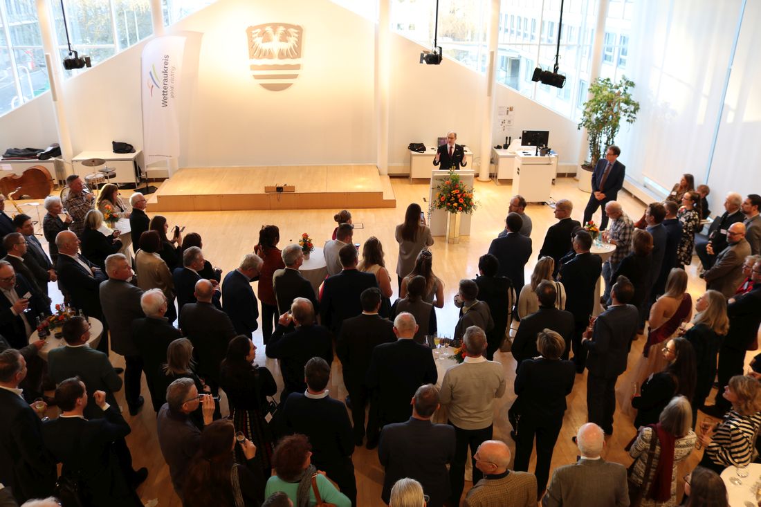 190 Gäste kamen zum Neujahrsempfang des Wetteraukreises, den Landrat Jan Weckler mit seiner Begrüßungsrede eröffnete.