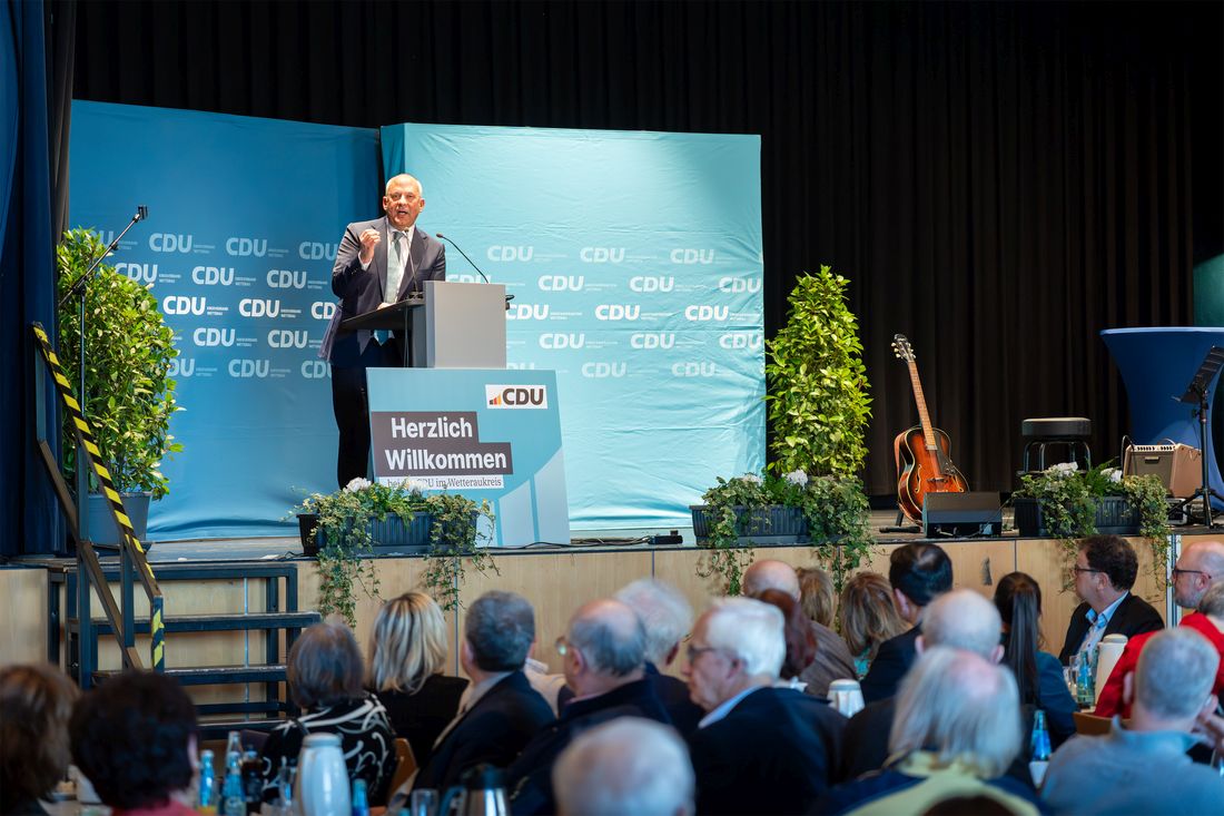 Der Nachmittag begann mit einem Sektempfang, bevor CDU-Kreisvorsitzender Michael Hahn und CDU-Stadtverbandsvorsitzender und Landtagsabgeordneter Tobias Utter die Veranstaltung offiziell eröffneten. Der mit Spannung erwartete Höhepunkt war die Rede des Hessischen Innenministers Prof. Dr. Roman Poseck, der die Themen Sicherheit, Migration und Wirtschaft in den Mittelpunkt seiner Rede stellte.