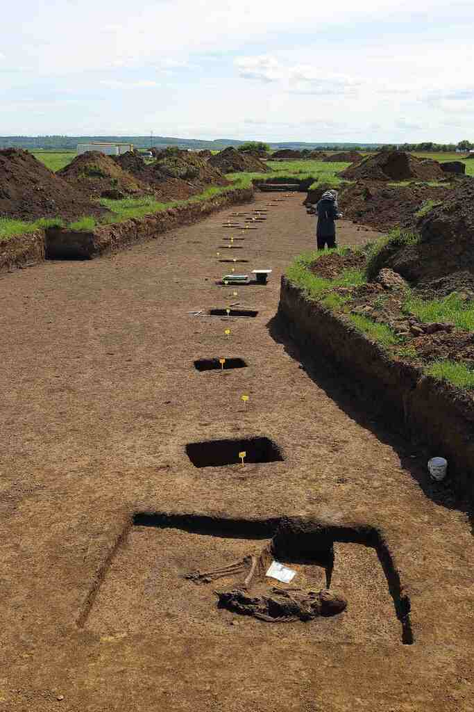 Foto: Neolithische Bestattung und Spuren von Jungsteinzeitlichen Hauspfosten in Wölfersheim-Berstadt.
