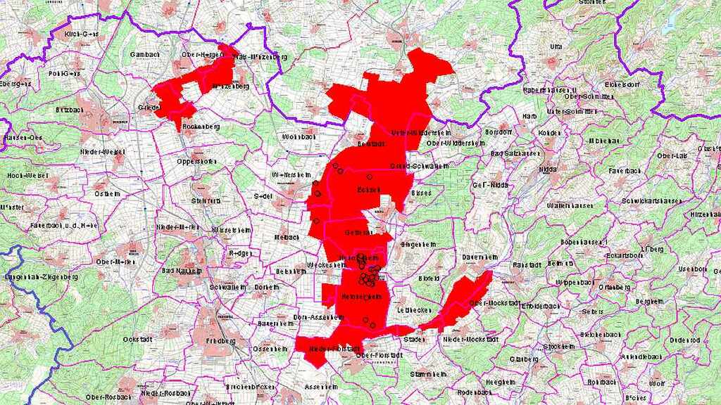 Foto: Dem in der Karte rot eingezeichneten Risikogebiet gehören die gewässernahen Feuchtgebiete des Wetterauer Auenverbands entlang der Horloff, der Nidda und der Wetter an. Sie befinden sich in ausgewiesenen Gebieten von Butzbach, Echzell, Florstadt, Münzenberg, Ranstadt, Reichelsheim, Rockenberg und Wölfersheim.