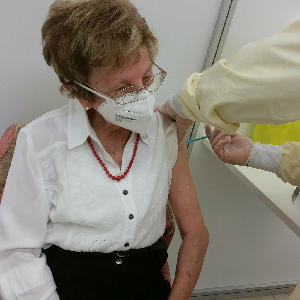 Foto: Unser Bild zeigt die langjährige Vorsitzende des Wetterauer Seniorenbeirates die dieser Tage ihre erste Impfung im Impfzentrum in Büdingen erhielt.