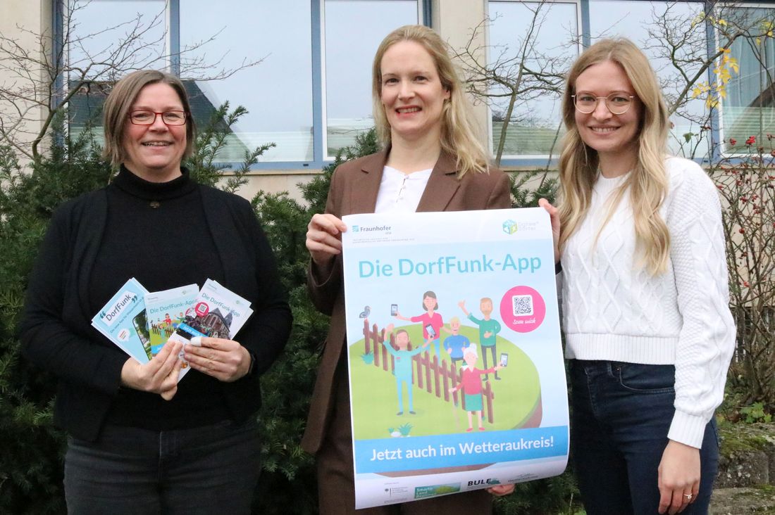 Über die kreisweite Freischaltung der DorfFunk App freuen sich (von links): Ehrenamtskoordinatorin Anita Graf, Erste Kreisbeigeordnete Birgit Weckler und Antonia Klein vom Fachdienst Kreisentwicklung.