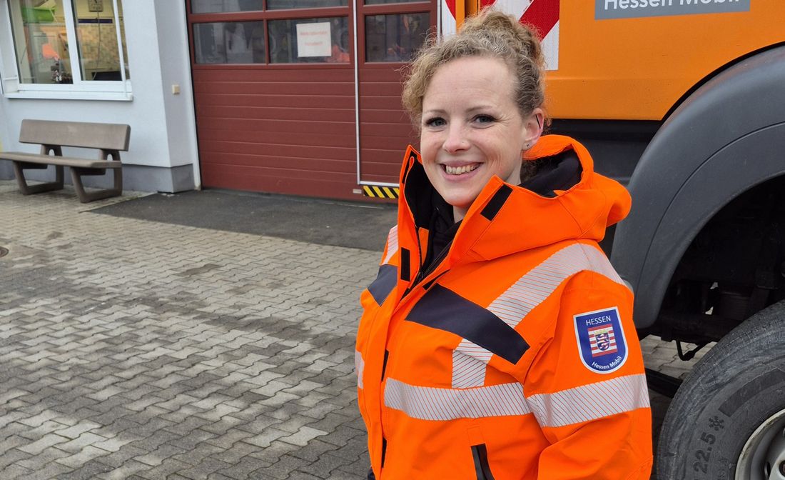 Schönes Wetter hat Miriam-Madeleine Zwerenz nicht mitgebracht. Draußen ist es noch stockdunkel, dazu geht heftiger Regen auf das Gelände der Straßenmeisterei in Nidda nieder. Etwas später wird er in Schnee übergehen. Die neue Leiterin für die Straßenmeistereien in Friedberg und Nidda beginnt ihren Job im Januar also an einem typischen Winterdienstmorgen. Zwerenz sieht sich dafür einer freundlichen wie etwas neugierigen Männerrunde gegenüber. 'Wie tickt die neue Chefin wohl?', kann man den aufmerksamen Gesichtern der erfahrenen Streckenwarte und Kolonnenführer, aber auch der jüngeren Kollegen ablesen.