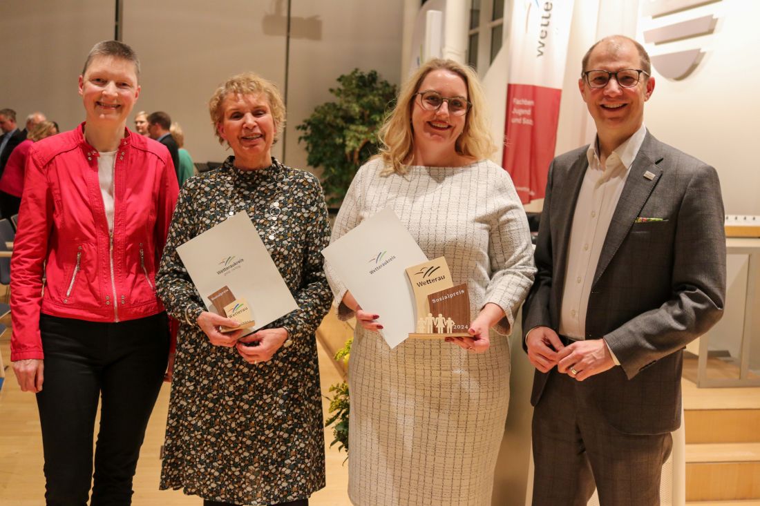 In feierlichem Rahmen und vor rund 80 Gästen wurde im Plenarsaal des Friedberger Kreishauses der Wetterauer Sozialpreis 2024 verliehen. Ausgezeichnet wurde der Verein Atemzeit e. V. aus Wölfersheim für seine herausragende Arbeit mit lebensbedrohlich erkrankten Kindern. Eine Belobigung erhielt die Helfer-Initiative Rosbach für ihr langjähriges Engagement in der Unterstützung von Familien, Senioren und Menschen mit Beeinträchtigungen.
