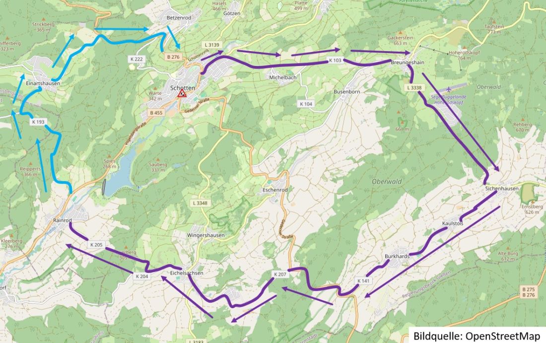 Die Arbeiten sollen am Dienstag, 18.03.2025, beginnen und bis Anfang Mai andauern. Für die Zeit der Arbeiten wird eine Umleitung eingerichtet, die den überörtlichen Verkehr großräumig um Schotten herumführt. Wer während der Baumaßnahme von Laubach oder Lauterbach aus nach Rainrod oder weiter gen Nidda fahren möchte, wird über Michelbach, Sichenhausen, Burkhards und Eichelsachsen geleitet. Die Gegenrichtung aus Nidda und Rainrod kommt über Einartshausen sowie die B 276 bei Betzenrod ans Ziel.