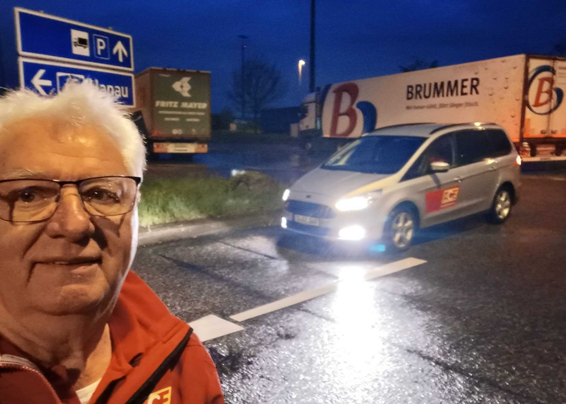 Anton Hofmann, Mitglied und Presssprecher im Kreisvorstand Main-Kinzig und Wetterau, bei der nächtlichen Zählaktion vom akuten Mangel an Lkw-Stellplätzen der insgesamt 6 Rastplätze auf beiden Seiten an der A45 zwischen dem Langenselbolder Dreieck und dem Gambacher Kreuz.