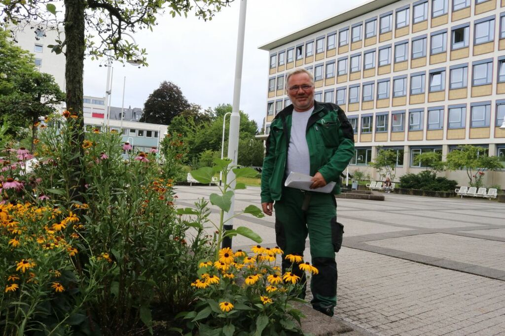 Foto: Lothar Torau hat mit seinen Mitarbeitern und seiner Mitarbeiterin auch am Friedberger Europaplatz Angebote für Insekten und ein schöner Anblick sind sie auch.