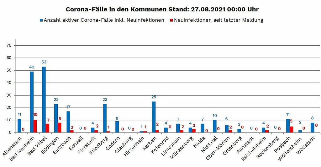 Foto: Übersicht über die aktiven Corona-Fälle in den Kommunen des Wetteraukreises.