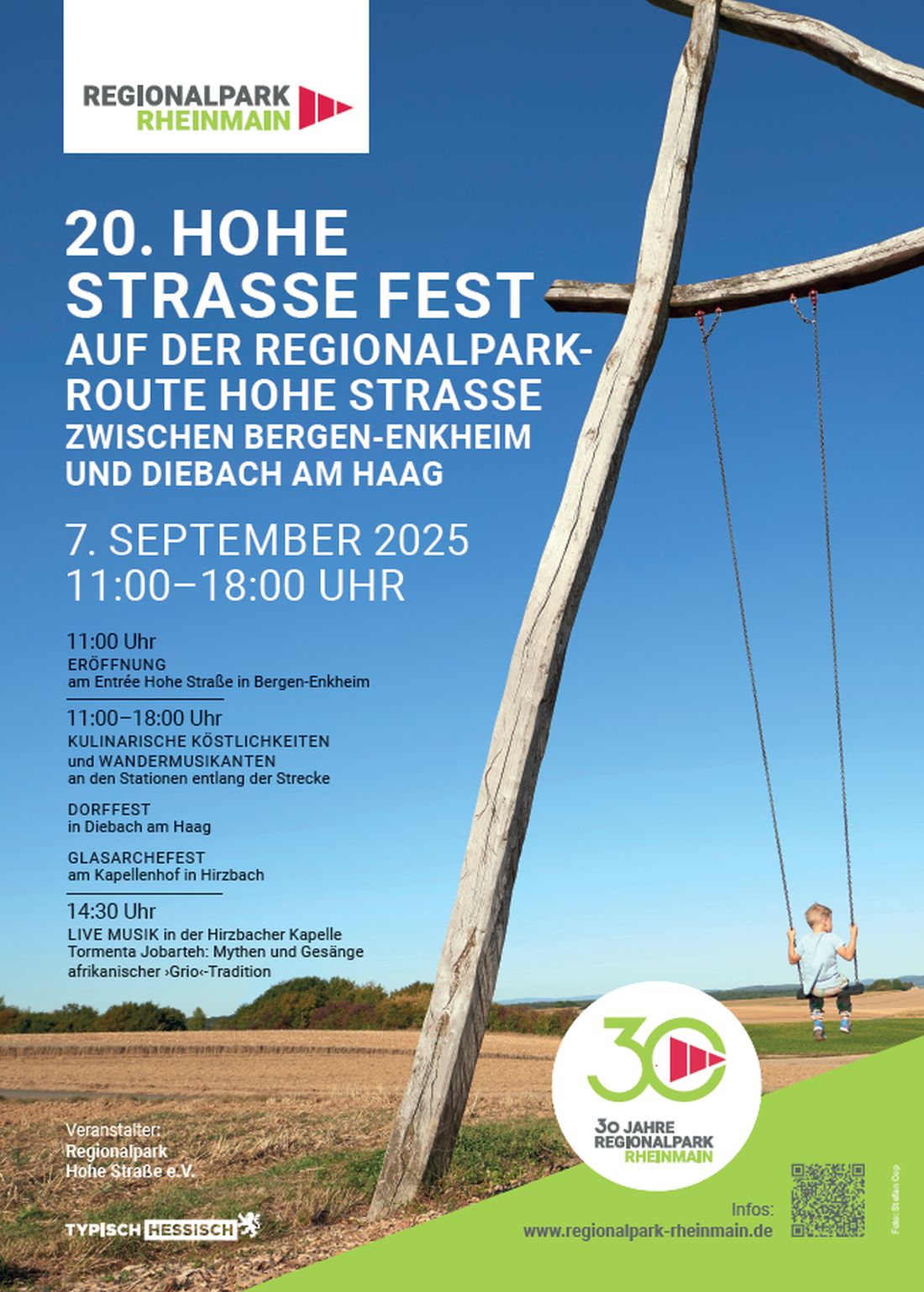 Auf der Hohen Straße hat man sicher einen der besten Ausblicke in die ganze Region und gleichzeitig lässt es sich auf dem Rücken des Höhenzugs sehr angenehm Radeln und Wandern. „Wir feiern nun schon zum 20.Mal und das Hohe Straße Fest ist zu einer festen und verbindenden Größe für unsere Region geworden “ sagt Michael Göllner, Bürgermeister von Hammersbach und Vorsitzender des Vereins Regionalpark Hohe Straße. „Nehmen Sie sich ihr Rad oder genießen Sie auf Schusters Rappen ein buntes Treiben in landschaftlich herrlicher Umgebung. Das Festprogramm und viele weitere Informationen finden Sie auf der Homepage des Regionalparks RheinMain, www.regionalpark-rheinmain.de.