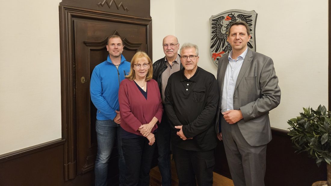 Tauschten sich im Rahmen der Integrationskommission über das Christentum aus (v.l.): Christian Keim (stv. Kommissionvorsitzender), Pfarrerin Heinke Willms, Pfarrer Dieter Wichihowski, Pfarrer Karl Heinrich Stein und Bürgermeister Dominic Imhof. Foto: Gemeinde Altenstadt