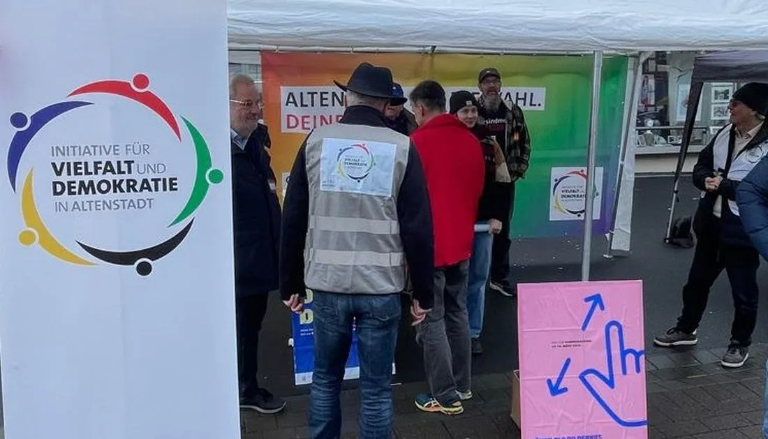 Mit einem überparteilichen Informationsstand auf der Vogelsbergstraße hat die Initiative für Vielfalt und Demokratie in Altenstadt e.V. am vergangenen Samstag (21.02.) ein sichtbares Zeichen für Wahlbeteiligung gesetzt. Am Vormittag suchten Mitglieder des Vereins vor der Eberhard-Passage das Gespräch mit Bürgerinnen und Bürgern zur bevorstehenden Kommunalwahl am 15. März.