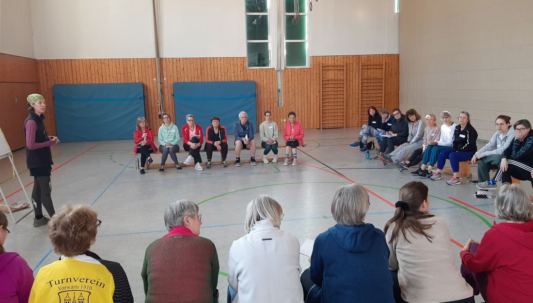 Am 15. März fand in Bad Nauheim Steinfurth, veranstaltet vom Sportkreis Wetterau e.V., eine Fortbildung mit dem Thema „Balance-Koordination-Mobility“ für Übungsleiter im Gesundheitssport statt. Die Veranstaltung war schnell ausgebucht. Dies lag sicher auch an unserer Referentin Annett Suchla-van Dortmont, die mit ihrer langjährigen Erfahrung in verschiedenen sportlichen Themenbereichen als Referentin beim Landessportbund Hessen bekannt ist. Auch ist der Bedarf an Fortbildungen für ÜL nach wie vor groß.