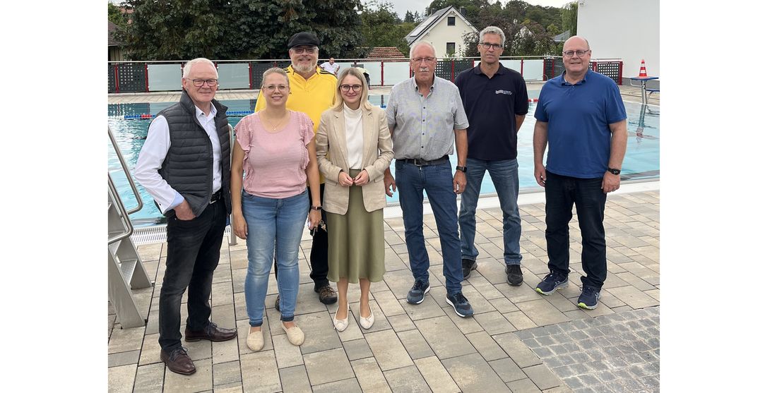 Die Wetterauer Bundestagsabgeordnete Natalie Pawlik (SPD) besuchte gemeinsam mit dem Ersten Stadtrat der Stadt Butzbach, Bernhard Dern, sowie mit Vertretern des SPD-Ortsvereins, darunter Ehrenbürgermeister Michael Merle und Mathias Paul, das Freibad im Butzbacher Stadtteil Maibach.