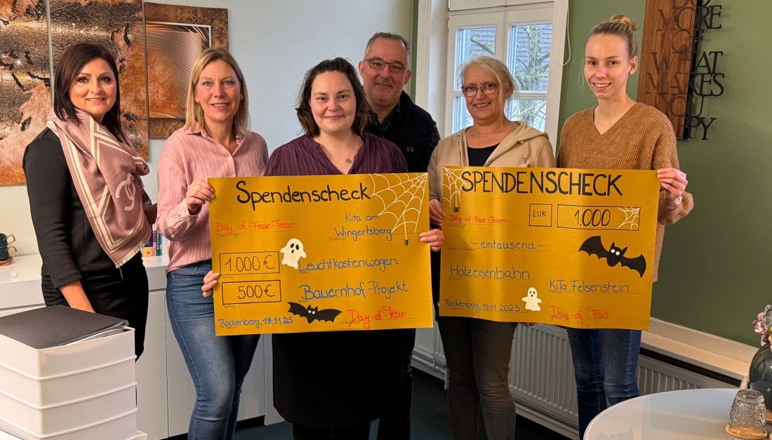 Nach dem diesjährigen Gruselhaus-Event konnte das Day-of-Fear-Team erneut eine großzügige Spende an die Rockenberger Kindertagesstätten übergeben. Das Gruselhaus, das vom 30. Oktober bis 2. November in der Schillerstraße geöffnet war, bot den Besucherinnen und Besuchern schaurige Unterhaltung – und verband dabei Nervenkitzel mit einem guten Zweck.
