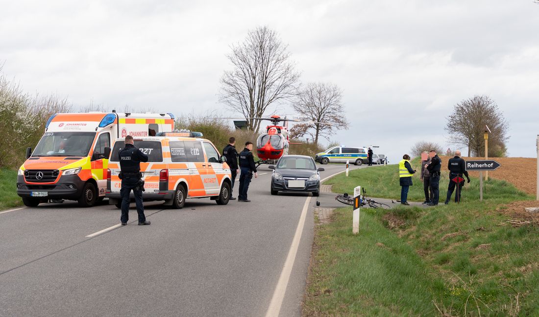 Die Radfahrerin stürzte und erlitt dabei schwere Verletzungen. Ein Rettungshubschrauber flog die Frau in eine Klinik. Der Unfallverursacher flüchtete vom Unfallort. Ein Sachverständiger nahm noch am Nachmittag die Arbeit an der Unfallstelle auf. An der Unfallstelle blieb der rechte Außenspiegel des unfallverursachenden Fahrzeugs zurück. Ersten Ermittlungen zur Folge könnte es sich bei dem flüchtigen Pkw um einen Toyota Aygo, einen Citroen C1 oder einen Peugeot 107 handeln.