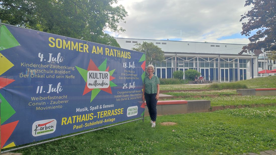 Alle Veranstaltungen finden auf der Paul-Schönfeld-Anlage (Rathaus-Terrasse) statt. Bei Regen wird das Programm im Rathaus-Saal präsentiert. Beginn ist jeweils um 18 Uhr mit dem Opening-Act, der Show-Act ist jeweils gegen 19 Uhr an der Reihe und die Stimmungsband beginnt gegen 20 Uhr und wird bis 22 Uhr spielen. Der Eintritt ist natürlich frei. „Gemütlich mit den Freunden und der Familie an der Rathaus-Terrasse sitzen, bei bestem Wetter entspannt ein Glas Wein trinken und der großartigen Musik der Künstlerinnen und Künstler lauschen: Das ist Kultur Mittendrin“, erklärt Karbens Kultur-Dezernentin Sabine Helwig voller Vorfreude.