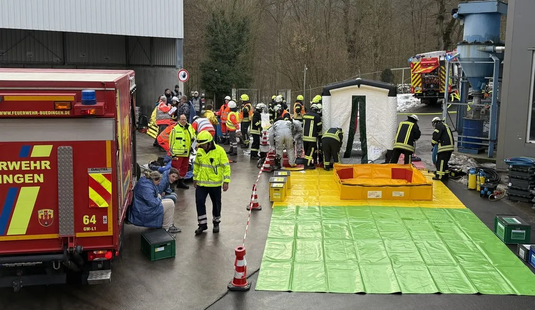 Rund 250 Einsatzkräfte aus Brand- und Katastrophenschutz sowie Rettungsdienst und Notfallseelsorge waren auf dem Werksgelände im Einsatz.