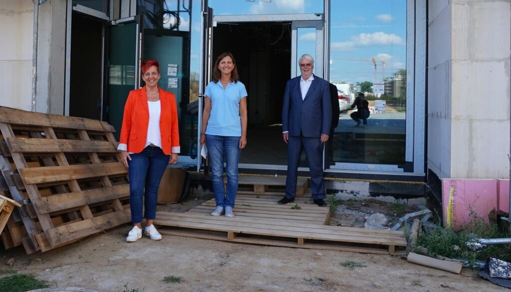 Wer entlang des Rad- und Gehwegs durch den Quellenpark in Bad Vilbel fährt oder läuft, dem fallen die Baugebiete und die rege Bautätigkeit auf. Was sicher ganz besonders ins Auge sticht, ist das L-förmige Gebäude direkt neben dem Weg. In dieses werden künftig die beiden Kitas im Quellenpark einziehen. Eine der Kitas wird bekanntlich von der evangelischen Christuskirchengemeinde Bad Vilbel betrieben, die zweite wird in städtischer Hand sein.