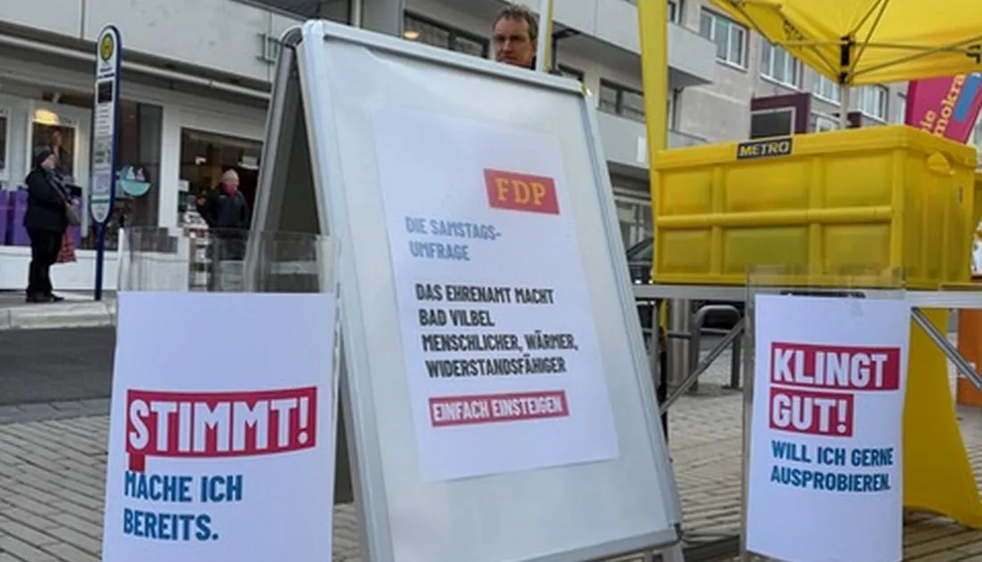 An ihrem Infostand auf der neuen Mitte hatten sich die heimischen Freien Demokraten das Thema Ehrenamt ausgewählt. „Jeder weiß , ohne die ehrenamtliche Betätigung kann eine städtische Bürgergesellschaft nicht bestehen, wir müssen uns wechselseitig unterstützen.