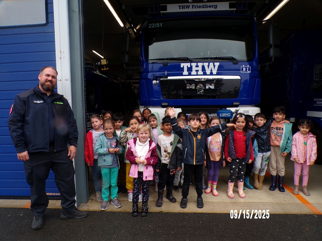„Was ist denn das THW?“ Diese Frage beschäftigte die Schulanfängergruppe der Kita Farbklecks in Friedberg-Fauerbach. Ein Mädchen konnte uns weiterhelfen: Das ist das Technische Hilfswerk. Ihr Vater arbeitet dort. Da lag es nahe, ihn im Sitz des THW in Friedberg zu besuchen. Schon im Vorfeld bereiteten sich die Kinder mit einem kurzen Film über die Arbeit des THW vor. Fragen wurden gesammelt, was sie alles vor Ort abklären wollten.