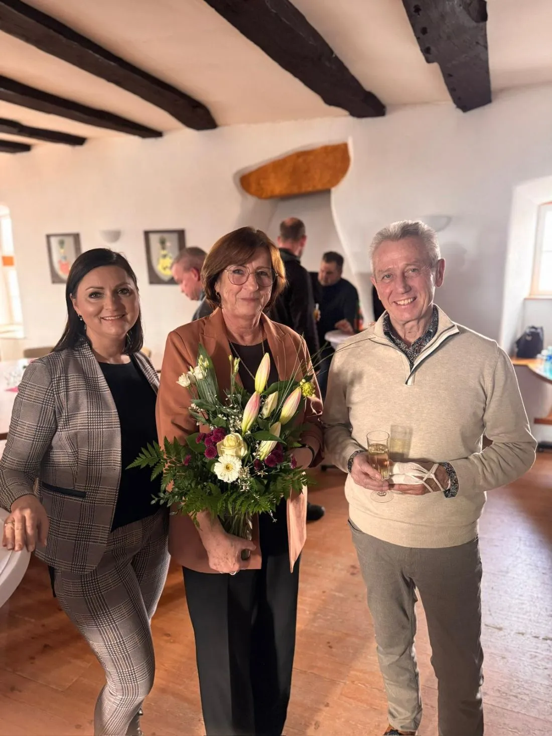 Olga Schneider, Bürgermeisterin der Gemeinde Rockenberg (links), Regina Tinz (Mitte) und Ehrenbürgermeister Manfred Wetz (rechts), mit dem Tinz ebenfalls mehrere Jahre eng zusammengearbeitet hat. Foto: Gemeinde Rockenberg