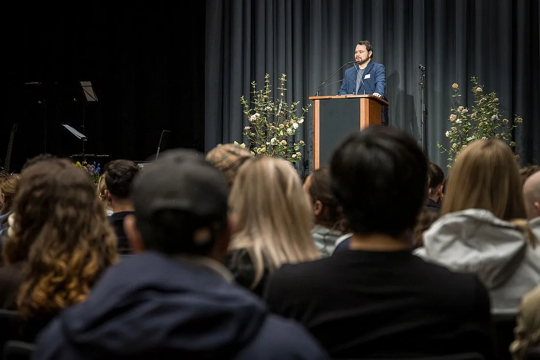 Für die Stadt Gießen stellte Oberbürgermeister Frank-Tilo Becher den Studienort vor. „Gießen hat einen durchaus differenzierten Ruf", sagte er mit einem Schmunzeln und stellte die für Studierende positiven Seiten heraus: Als Deutschlands Stadt mit der höchsten prozentualen Studierendendichte sei Gießen lebendig, jung, vielfältig und aktiv. Die Stadt sei so spannend wie das Studium und Ankerpunkt für das gesamte weitere Leben. Er gratulierte den Erstsemestern zu dem Entschluss, nach Gießen zu kommen und an einer Hochschule „mit gutem Ruf und breitem Angebot" zu studieren. Auch der AStA richtete das Wort in der von Studienberater Martin Kuulmann moderierten Veranstaltung an die Studierenden.