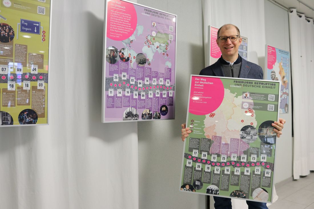 Eine Plakatausstellung im Friedberger Kreishaus beleuchtet den Epochenumbruch der Jahre 1989 und 1990. Landrat Jan Weckler hat die Ausstellung eröffnet. Sie wurde von der Bundesstiftung zur Aufarbeitung der SED-Diktatur konzipiert.