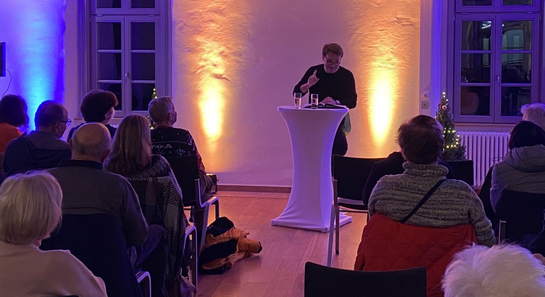 Mathias Herrmann verstand es, die Anwesenden in seinen Bann zu ziehen. Er schlüpfte gekonnt in die verschiedenen Rollen seiner Protagonisten. Mimik und Gestik wurden mit seiner wandelbaren Stimme untermalt und brachten die Zuhörerinnen und Zuhörer zum Lachen und Schmunzeln.