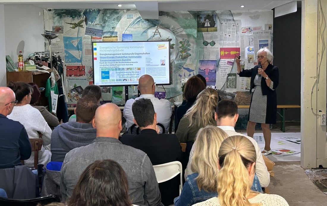 Energieberaterin Pia Heidenreich-Herrmann präsentiert den Wetterauer Kommunen Erfolgsbeispiele der energieeffizienten Sanierung aus der Region.