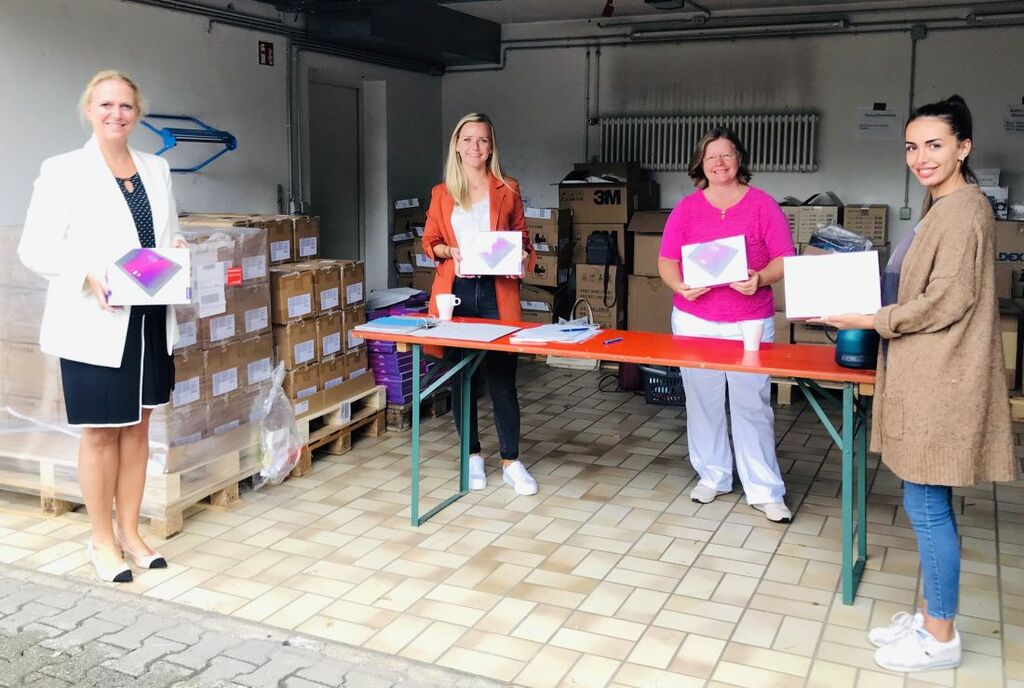 Erste Kreisbeigeordnete und Sozialdezernentin Stephanie Becker-Bösch übergibt zusammen mit der Fachstelle „Leben im Alter“ Tablets für stationäre Pflegeeinrichtungen und Einrichtungen für Menschen mit Behinderungen. Die massiven Einschränkungen sozialer Kontakte in Folge der Corona-Schutzmaßnahmen sind für alle schwer zu bewältigen. Besonders schwer trifft dies Menschen, die in stationären Einrichtungen leben. Auch die gelockerten Besuchsmöglichkeiten können regelmäßige soziale Kontakte nicht auffangen.