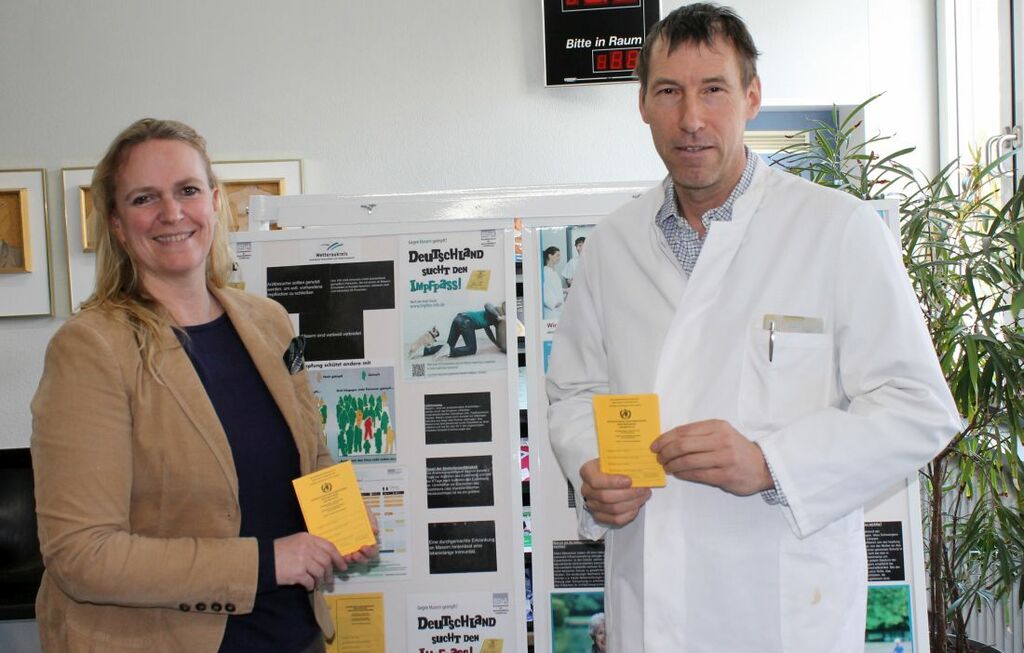 Gesundheitsdezernentin Stephanie Becker-Bösch mit Amtsarzt Dr. Reinhold Merbs. Einen Impfpass braucht man zurzeit noch nicht. Gegen Corona gibt es noch keinen Impfstoff, hier helfen nur die Einhaltung der „AHA Regeln“, Abstand halten, Hygieneregeln einhalten und die Alltagsmaske tragen.