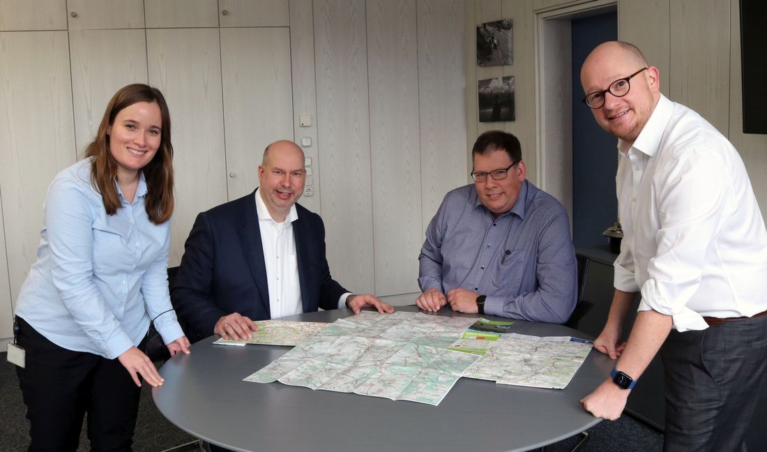 Foto (von links): Alina Arnold, Kreisbeigeordneter Matthias Walther, Niels Quante und Rouven Kötter, Erster Beigeordneter beim Regionalverband Frankfurt RheinMain.