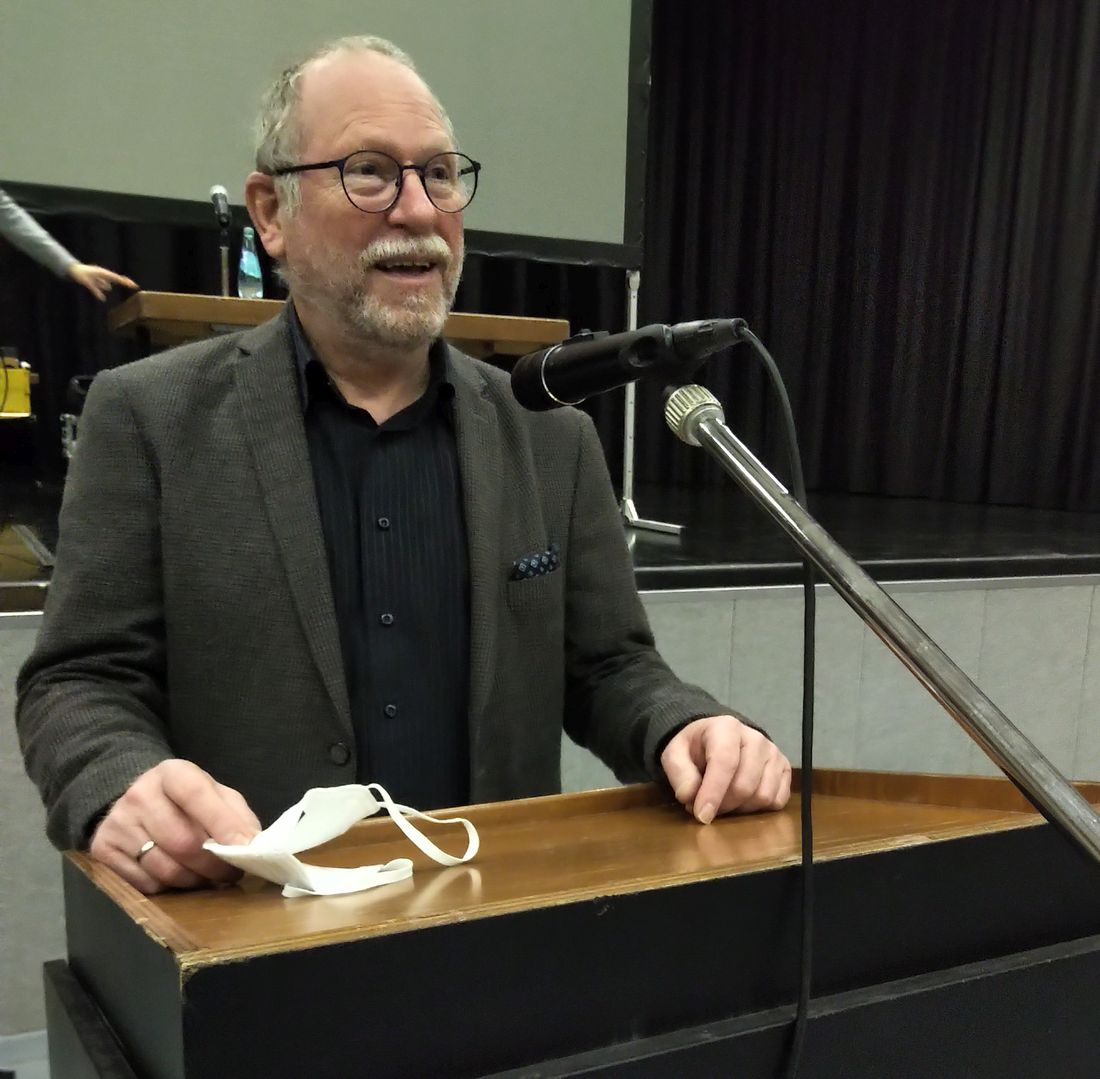 Foto: Reimund Becker, sozialpolitischer Sprecher der SPD Fraktion Wetterau erläutert den Handlungsbedarf bei der Flüchtlingsunterbringung. Fotograf: SPD Wetterau