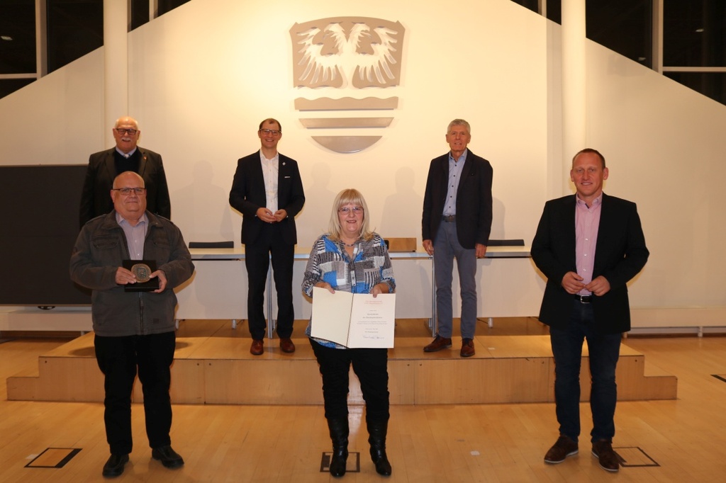 Zwei Monate ist es her, da übergab Landrat Jan Weckler die Silberne Ehrenplakette des Hessischen Ministerpräsidenten im Auftrag von Volker Bouffier an 13 Sportvereine. Drei von ihnen wurden nun außerdem mit der Sportplakette des Bundespräsidenten ausgezeichnet und so waren deren Vertreterinnen und Vertreter in den Plenarsaal eingeladen, um die Ehrung in Empfang zu nehmen: SG 1920 Stammheim e.V., Rasensport 1920 Ilbenstadt e.V., SV 1920 Reichelsheim. Der vierte, mit der Sportplakette des Bundespräsidenten ausgezeichnete Verein ist der SV 1920 Assenheim.