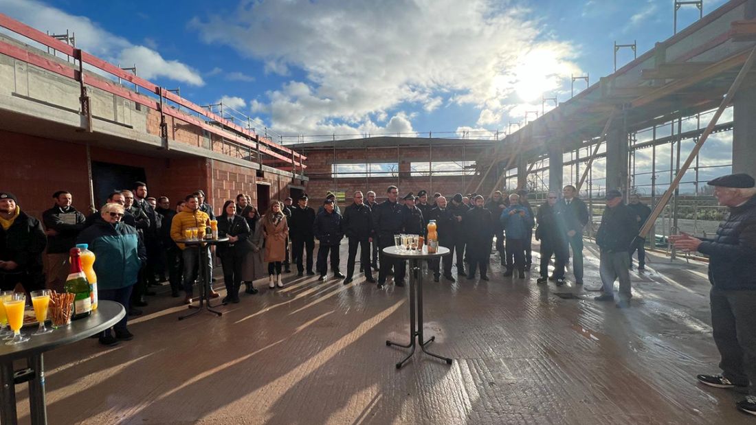 Im November 2023 wurde Richtfest im neuen Feuerwehrhaus in Rockenberg gefeiert (Foto). Rund ein Jahr später, im Winter 2024, werden die beiden Wehren aus Rockenberg und Oppershofen hier einziehen und wenig später offiziell zu einer Einsatzabteilung zusammengelegt. Foto: Gemeinde Rockenberg