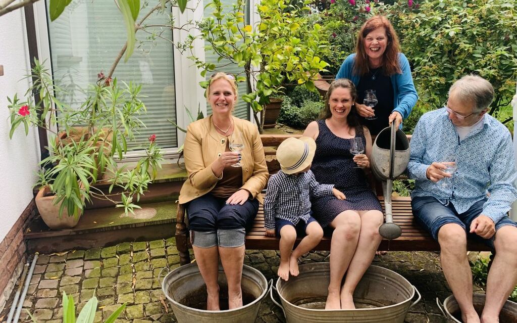 Foto: Die Kneipp Anwendungen sind für Groß und Klein geeignet: Von rechts nach links: Erste Kreisbeigeordnete Stephanie Becker-Bösch, der dreijährige Philipp, Verena Meinel- Markworth, Dagmar Meinel, und Peter Gudat.