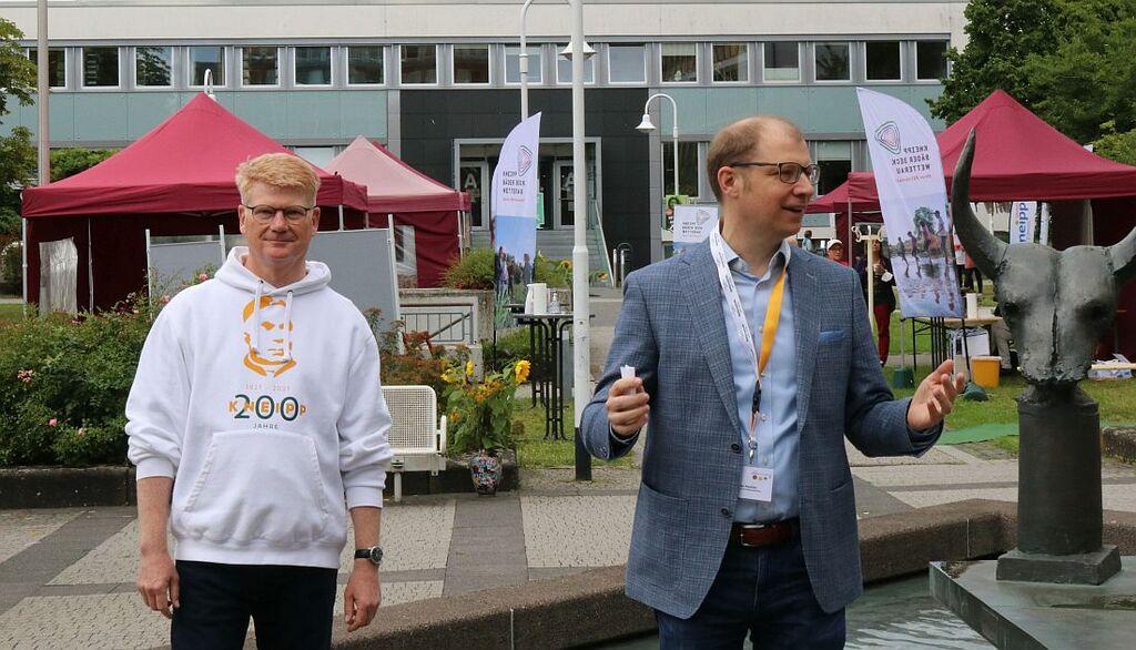 Landrat Jan Weckler (CDU) hat zusammen mit Dr. Lutz Ehnert, dem Vorsitzenden des Kneipp Landesverbandes Hessen und Vorsitzenden des größten Hessischen Kneipp Vereins Bad Nauheim-Friedberg-Bad Salzhausen den Gesundheitstag der Kreisverwaltung eröffnet. Passend zum 200. Geburtstag von Sebastian Kneipp sind die Angebote an den Ständen auf dem Friedberger Europaplatz angelehnt an die Elemente des Wasserdoktors aus Bad Wörishofen.