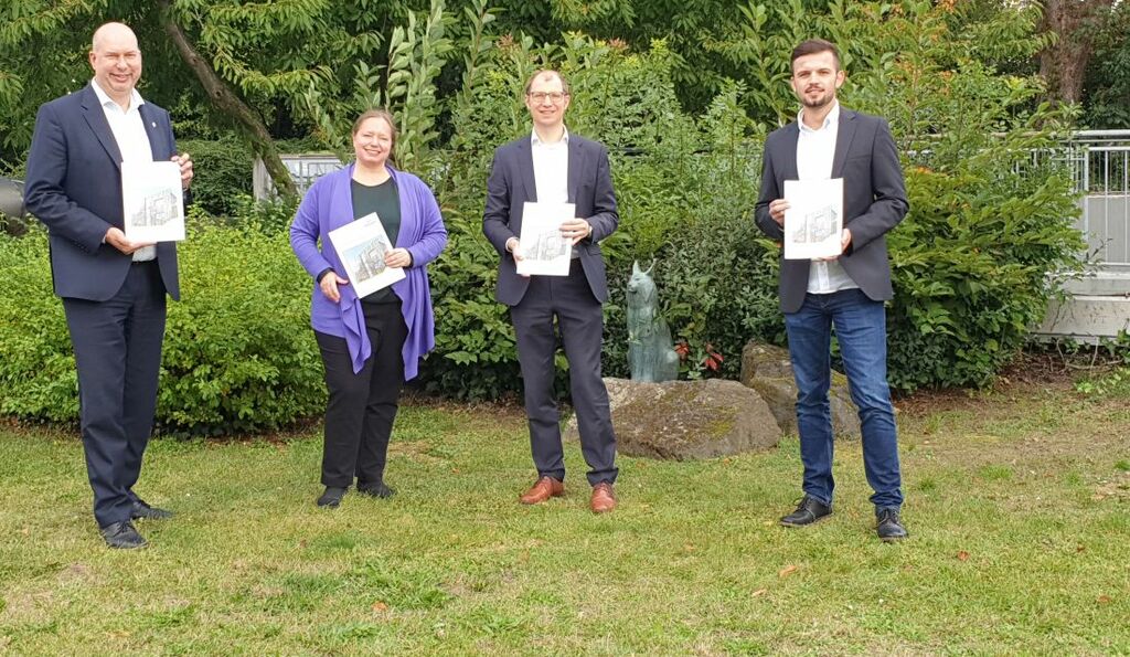 Foto (von links): Kreisbeigeordneter Matthias Walther, Susanne Feiler, Landrat Jan Weckler und David Bauner.