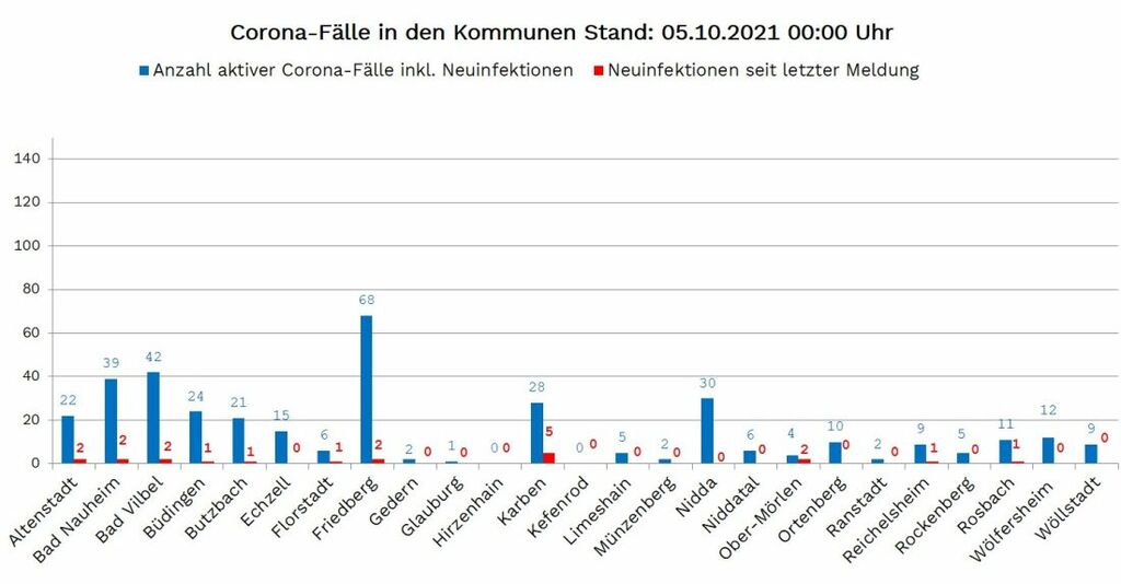 Foto: Übersicht über die aktiven Corona-Fälle in den Kommunen des Wetteraukreises.