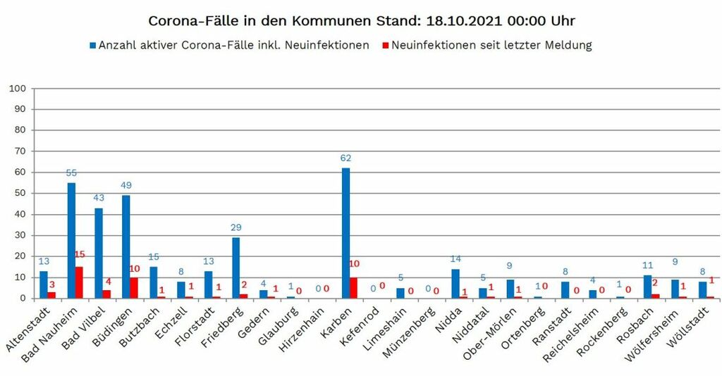 Foto: Übersicht über die aktiven Corona-Fälle in den Kommunen des Wetteraukreises.