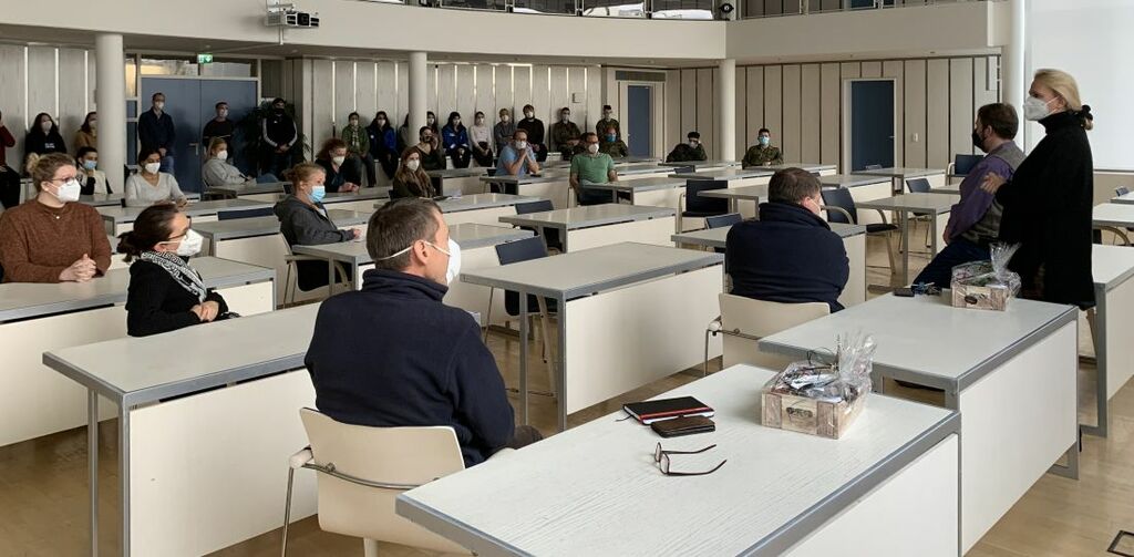 Foto: Erste Kreisbeigeordnete Stephanie Becker-Bösch bedankt sich bei den Mitarbeiterinnen und Mitarbeitern des Wetterauer Gesundheitsamtes