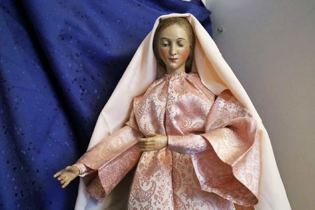 In einigen Schachteln wurden alte große Figuren gefunden, die in einem erbärmlichen Zustand waren. Schultes versuchte, diese zu säubern und zu restaurieren. Einer Maria mit fein gearbeitetem Gesicht und Händen aus Holz beispielsweise hat sie ein Drahtgestell als Stehhilfe um den Körper gebaut. Eine Krippe aus Ton stammt von der im Alter von 69 Jahren gestorbenen Schwester Elfriede Scheuer. „Sie war Kunst- und Zeichenlehrerin im Haus Sankt Hildegard und hatte eine ganz besondere Ausstrahlung. Ihr war Kunst und Ästhetik sehr wichtig, und sie hat die Figuren liebevoll geformt. Sie war eine Frohnatur, die in der Freude ihres Herzens Gott und den Menschen dienen wollte“, erinnern sich ihre Mitschwestern. Von Scheuer stammt auch das Landschaftsgemälde, das als Hintergrund der großen Weihnachtskrippe dient, die Bruder Wunibald Kellner aus Münsterschwarzach 1943 zum Zeichen des Dankes für die Einquartierung in den Kriegsjahren dem Mutterhaus schenkte.