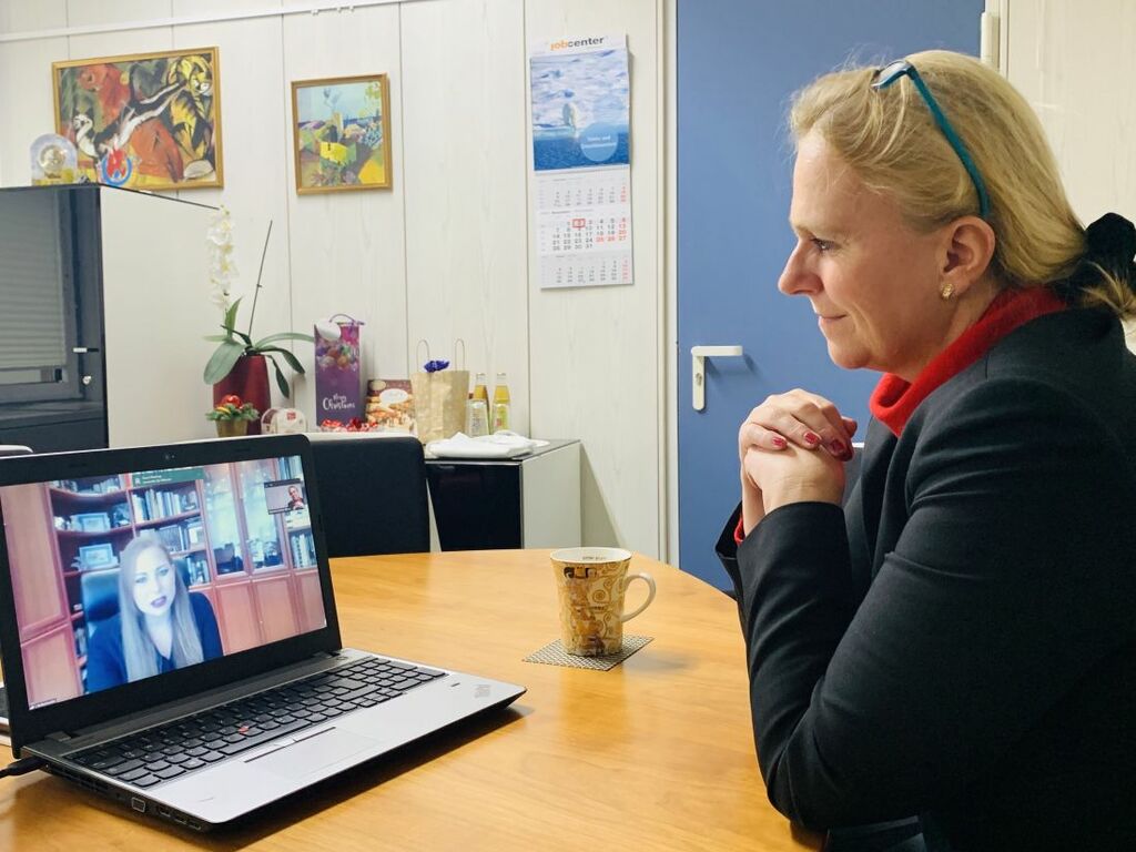 Im Gespräch mit Wetterauer Unternehmerinnen – unter diesem Motto tauscht sich Erste Kreisbeigeordnete Stephanie Becker-Bösch mit Frauen in Führungspositionen aus unterschiedlichen Branchen über Herausforderungen und Chancen der aktuellen Corona Krise aus. Auftakt hatte Carolin Reifschneider, Geschäftsführerin der Alten- und Pflegeheim Schacht GmbH, zuständig für die beiden Bad Nauheimer Seniorenresidenzen am Park und am Kaiserberg. Thema des Gesprächs: Die Arbeit in Pflegeeinrichtungen während Corona.