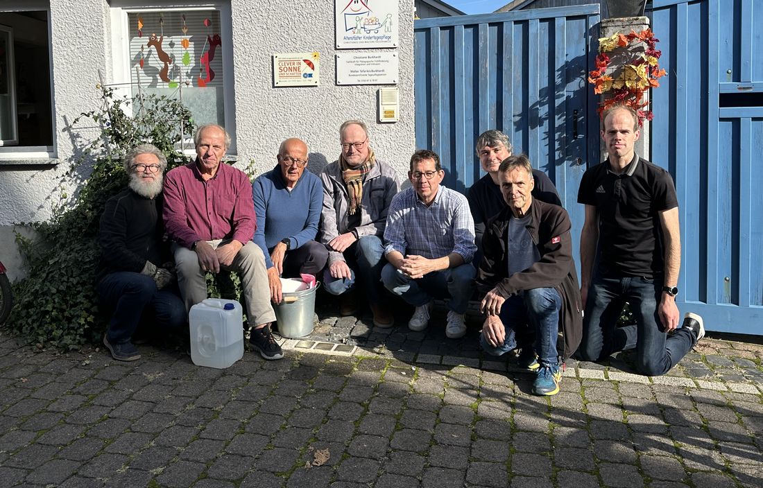 Teilnehmer der gemeinsam Aktion zur Pflege der Stolpersteine mit Hans Erich Seum (3. von links), Vorsitzender von Kulturplus Altenstadt und Sven Müller-Winter (5. von links), Vorsitzender der Initiative für Vielfalt und Demokratie in Altenstadt.