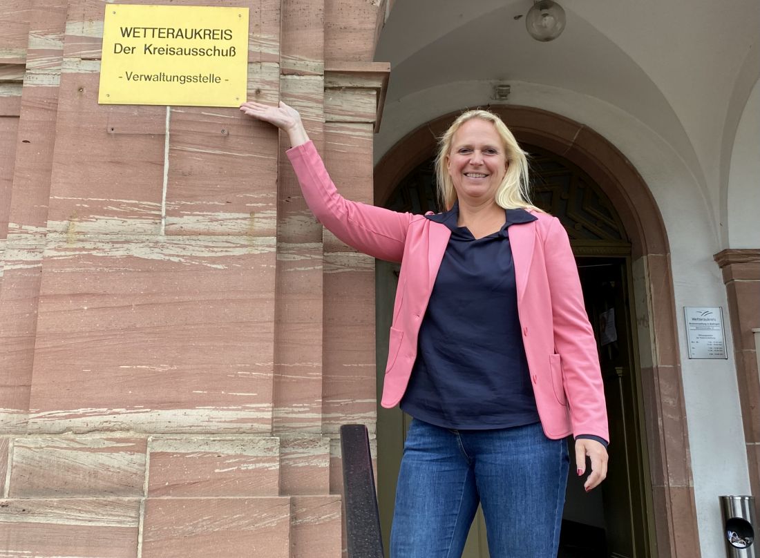 Bildunterschrift: Erste Kreisbeigeordnete Stephanie Becker-Bösch vor der Verwaltungsstelle in Büdingen.