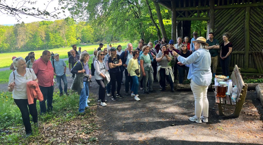 Organisiert von der Bürgerinitiative Waldpark Skiwiese, trafen sich am frühen Nachmittag rund 60 Natur- und Kräurerfreunde an der Wilbrandthütte, um gemeinsam die lebendige Pflanzenwelt der Bad Nauheimer Skiwiese zu erkunden.Unter der Leitung von Beate Rückl, einer erfahrenen Apothekerin und leidenschaftlichen Kräuter-expertin aus Friedberg, tauchten die Teilnehmerinnen und Teilnehmer in die faszinierende Welt der Wildkräuter ein. Während der rund 90-minütigen Führung erfuhren die Besucher Spannendes über Scharbockskraut, Knoblauchsrauke, Löwenzahn, Schöllkraut, Wiesenbaldrian, Weißdorn, Schafgarbe, Brennnessel und viele mehr.