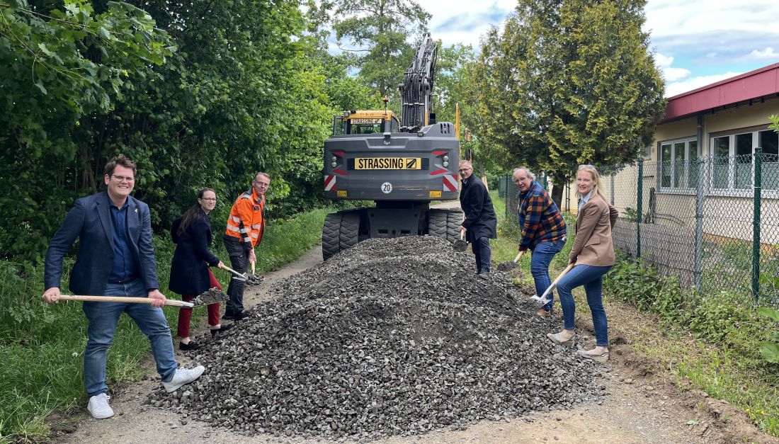 Am vergangenen Dienstag war es endlich so weit! Bürgermeister Sebastian Wysocki, Stadträtin Ricarda Müller Grimm und Erste Kreisbeigeordnete Birgit Weckler als Vertreterin des Vorstands des Zweckverbandes Regionalpark Niddaroute konnten im Beisein der Baufirma Strassing GmbH und des Planungsbüros IMB-Plan den ersten Spatenstich für den letzten Ausbauabschnitt der Niddaroute in Bad Vibel vornehmen.