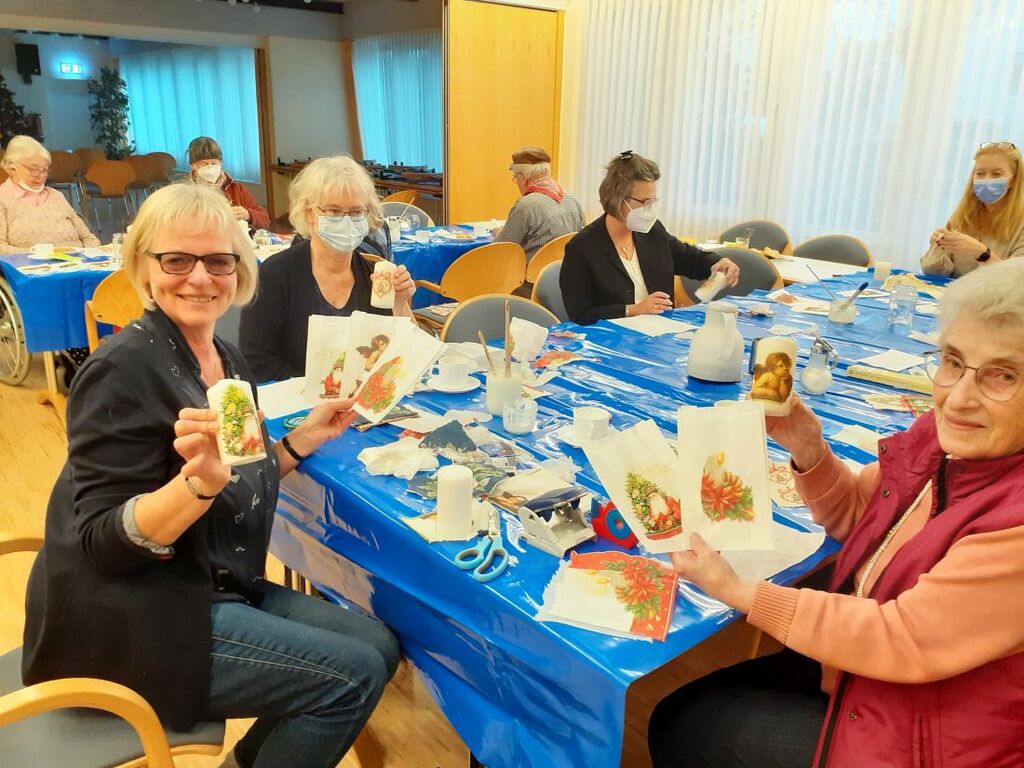 Foto: Für Abwechslung sorgte der stimmungsvolle Nachmittag mit Drehorgelmusik. Beim Adventsbasteln konnten sich die Teilnehmenden in der Serviettentechnik ausprobieren.